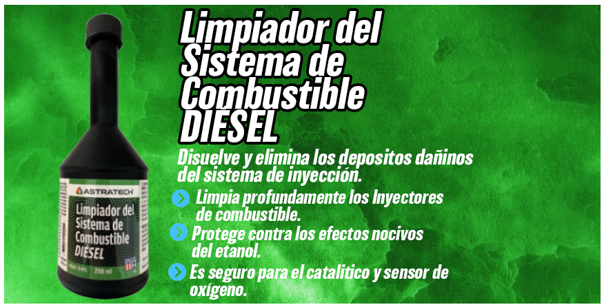Agregue el Limpiador del Sistema de Combustible Diésel ASTRATECH™ al tanque de combustible del vehículo al momento de llenarlo. La botella de 250 ml del Limpiador del Sistema de Combustible Diésel ASTRATECH® trata 45 litros de combustible diésel. PARA USO PROFESIONAL.